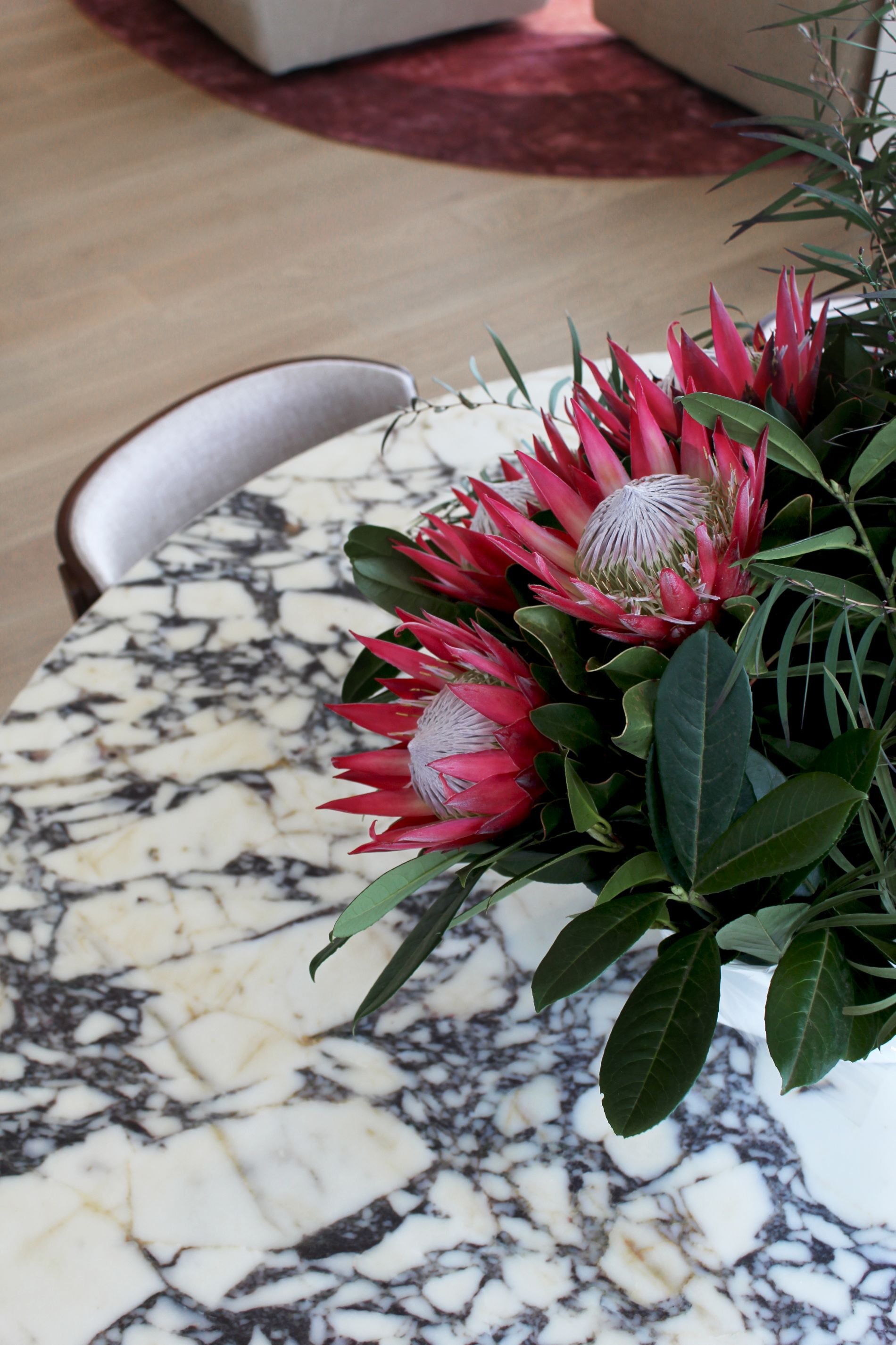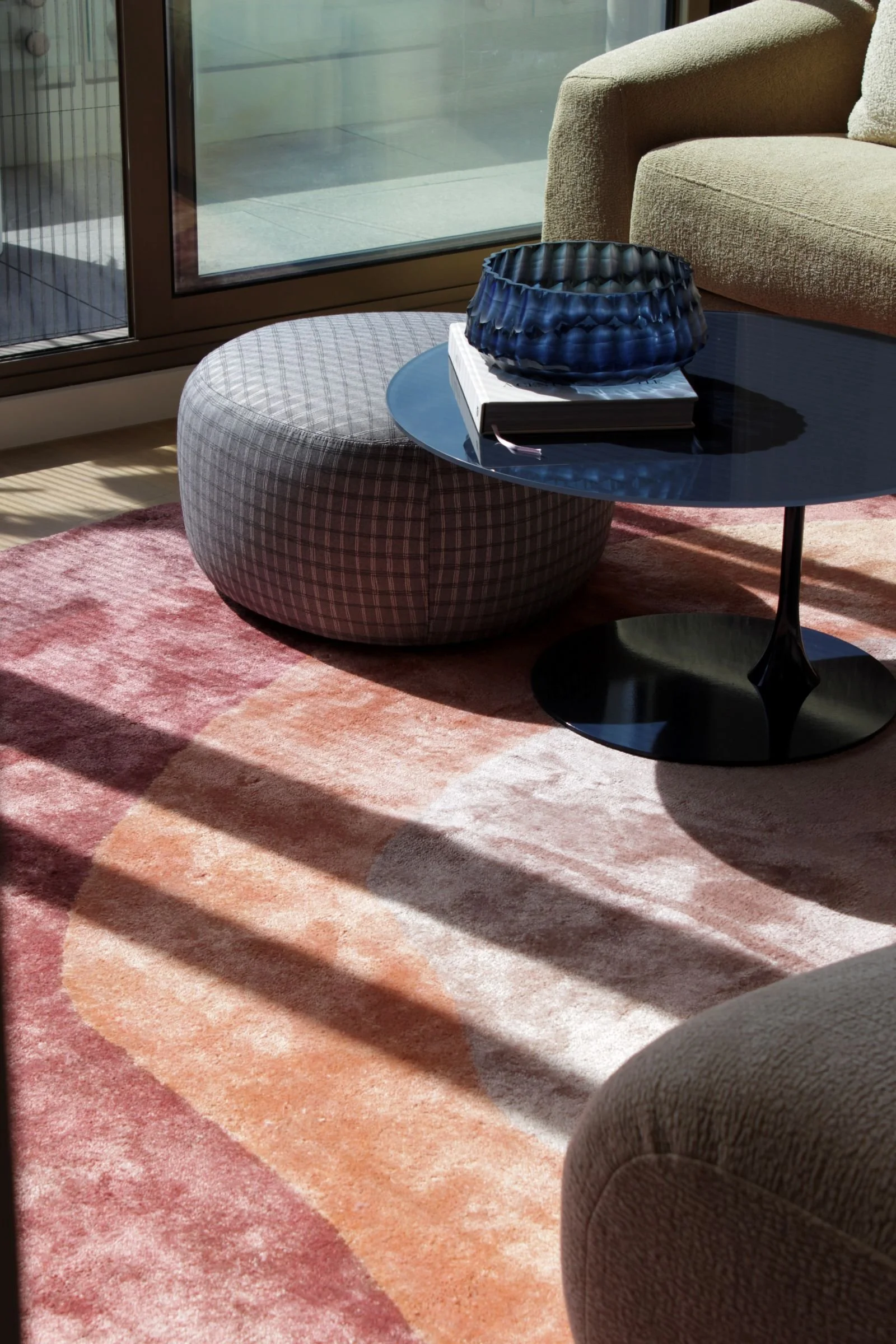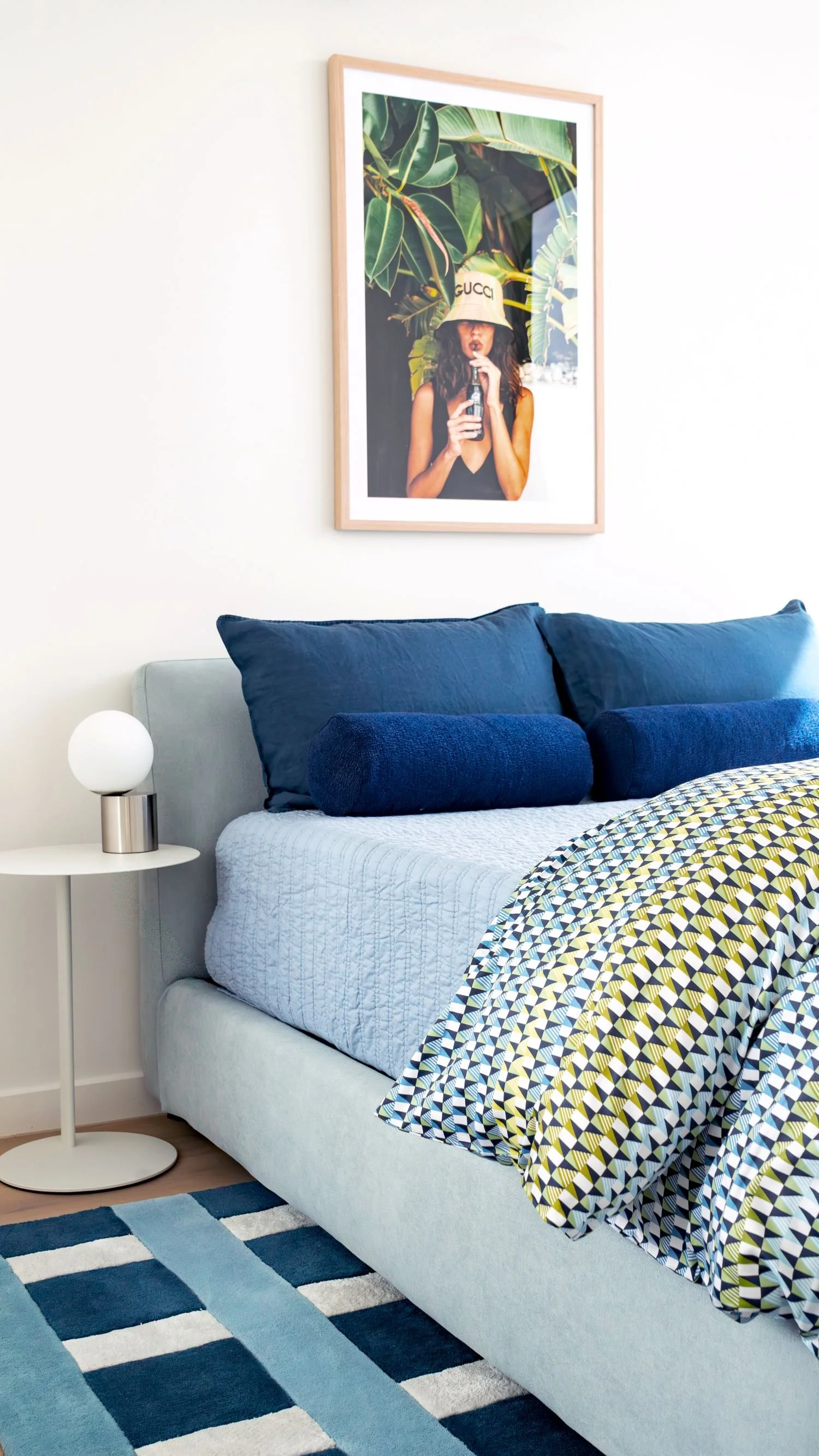 This Mornington coastal apartment started as a simple two-bedroom getaway, and through Studio Carlyle’s spatial reconfiguration it became a playful, luxurious three-bedroom retreat designed for long Australian summers. We carved the third bedroom from an oversized living zone, added a custom fireplace and replaced the carpet with timber boards chosen to balance the existing kitchen tones and the shifting coastal light. The fun came through our patterned custom-designed rugs, and a mix of bold, warm colours that lifted the whole apartment into a more energetic rhythm.